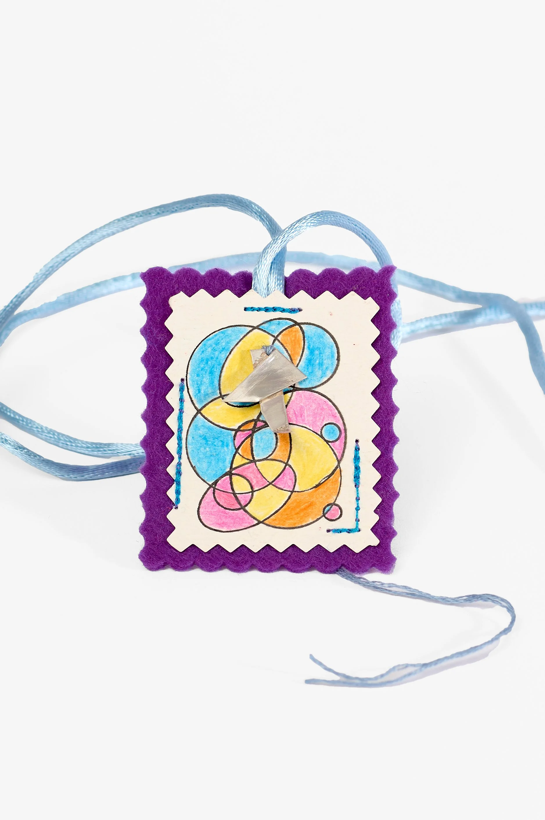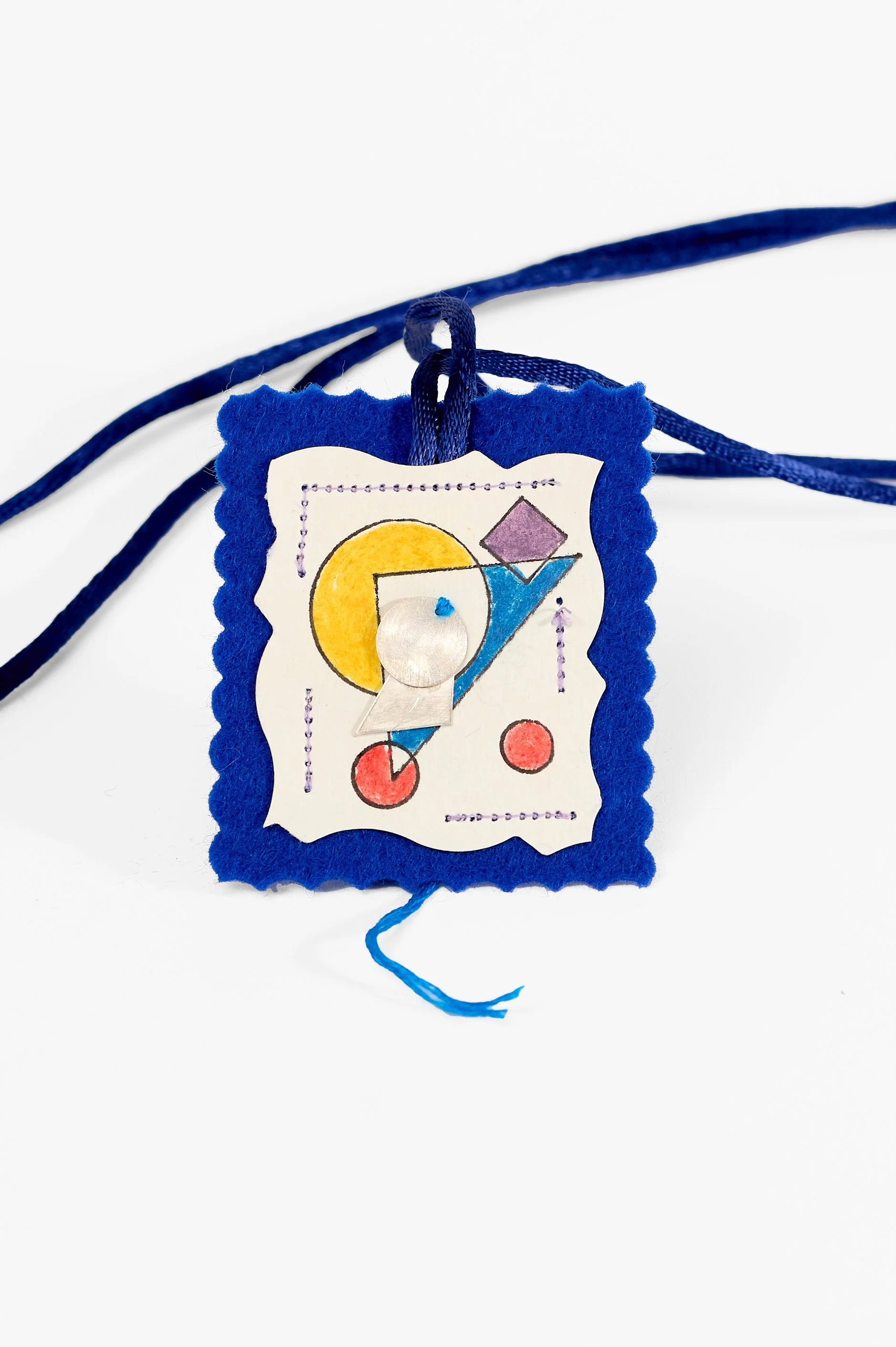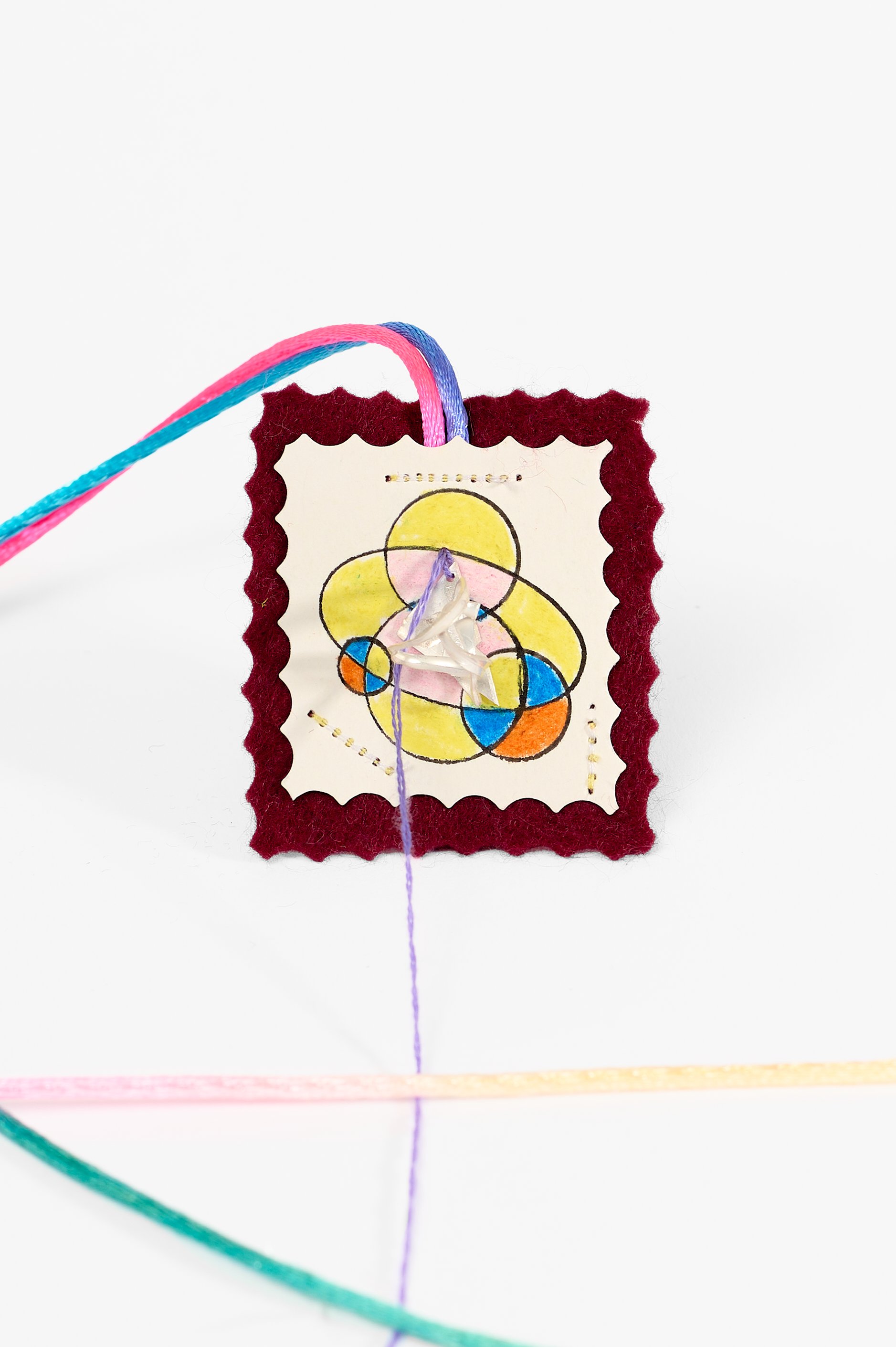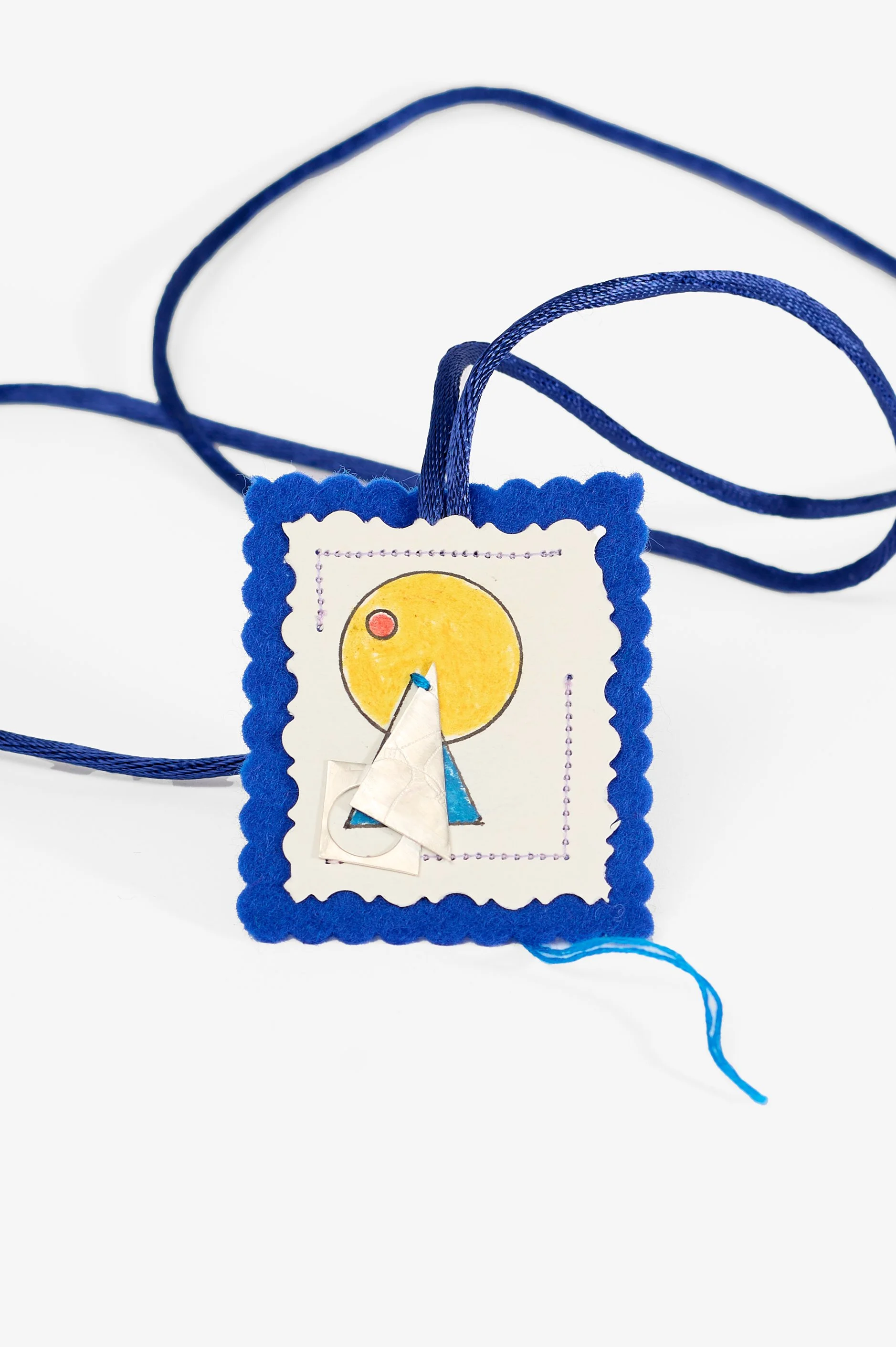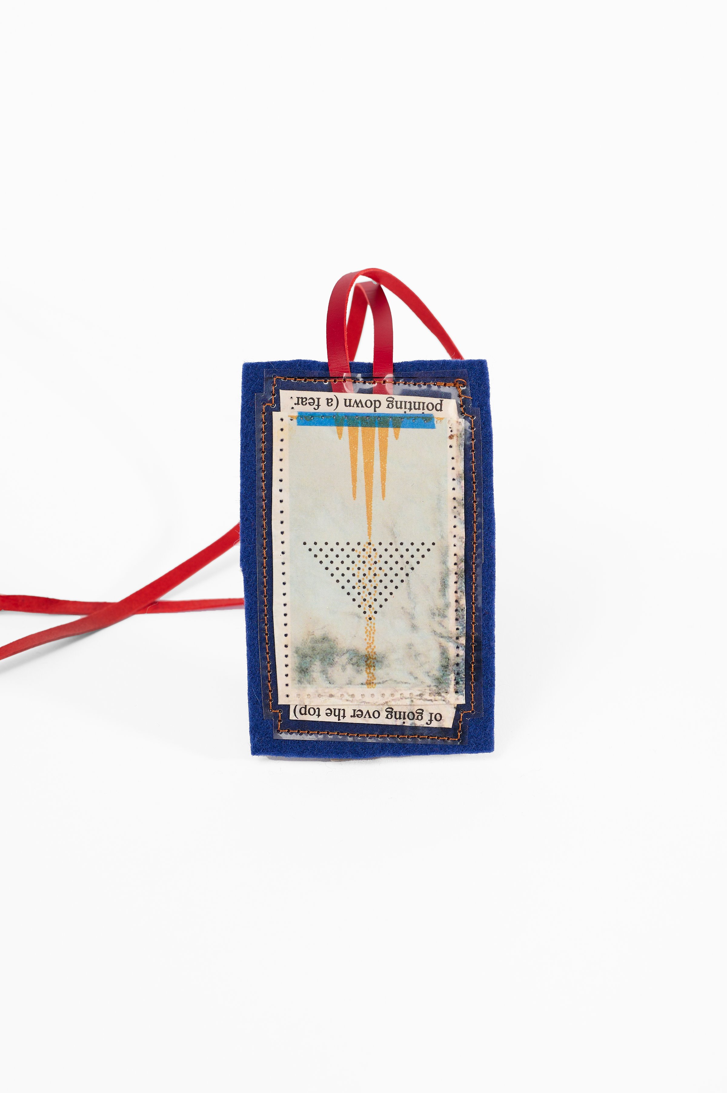 “On my first visit to Lyn’s studio, I was struck by the intimate work she was creating, inspired by a scapular gifted to her by a friend’s mother. The scapular is a holy object, originally given by Saint Mary of Mount Carmel to Saint Simon Stock—an object like a “get out of jail free” card, said to release a soul from purgatory into heaven. I was intrigued by this relic from my childhood.